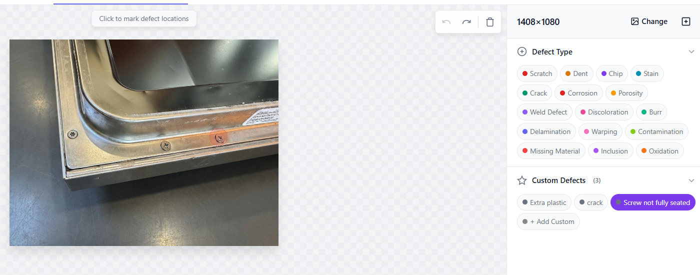 Custom defect classes are a core strength of the studio. If you can describe a defect in plain language, the AI can generate it.