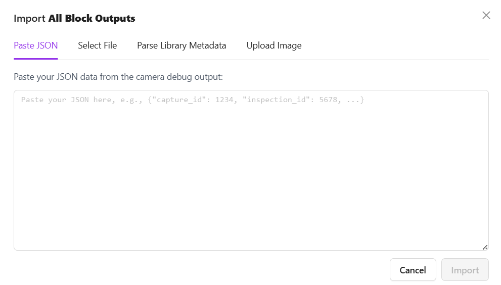 Import real camera data so the AI understands your output format. The generated flow is guaranteed to work correctly with your actual camera data.